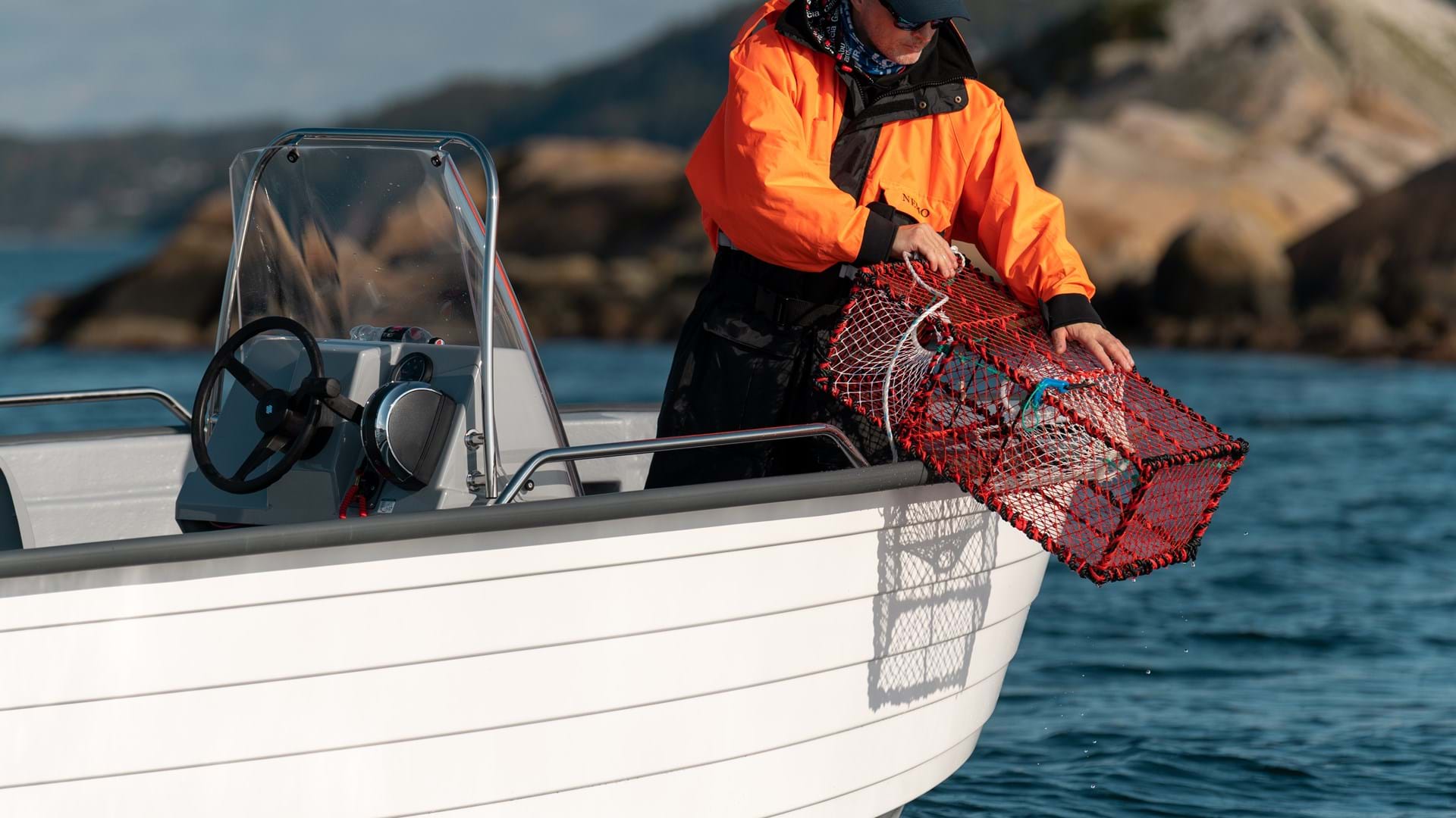 High freeboards and solid railings offer additional support, making it easier to pull in heavy lines or haul pots from the depths. You can stow bags and tackle boxes underneath the seat, while buoys and ropes have a designated compartment under the bow step.